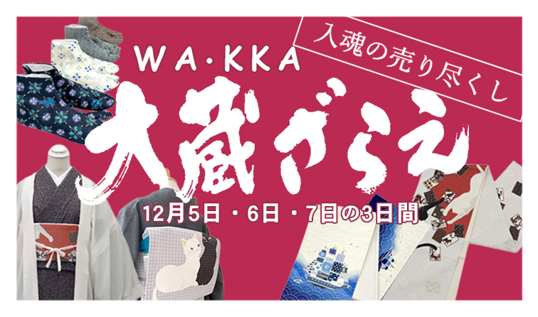 2025年 大感謝祭【WA・KKAの大蔵ざらえ】開催決定! 見逃し厳禁!WA・KKA年内最後のBIGセールです。 サンプル品、シーズンオフ商品、訳あり商品など、特別価格で大放出いたします。 欲しかったあのアイテムがゲット